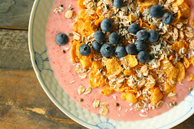 Smoothie til morgenmad med alverdens toppings..